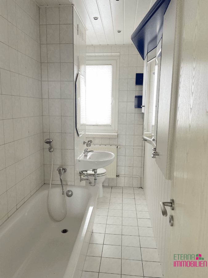 Das Innere der Wohnung besticht durch Laminatböden in den Zimmern und einem vollständig gefliesten Badezimmer. Die Küche bietet die Möglichkeit, sie ganz nach Ihren Vorstellungen einzurichten, da der alte Fußbodenbelag und die Einbauküche entfernt wurden.